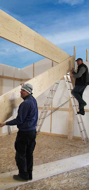 Grâce à un principe d’ossature décalée, les murs et les toitures bénéficient d’une isolation à rupture de pont thermique.